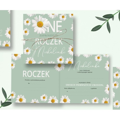 Zaproszenia Daisy Sage 24h na Pierwsze Urodziny Roczek Dziecka