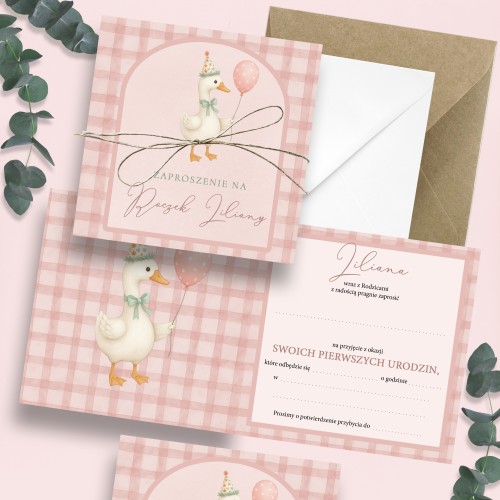 Zaproszenia Urodzinowe na Pierwsze Urodziny Roczek Dziecka - wzór Silly Goose